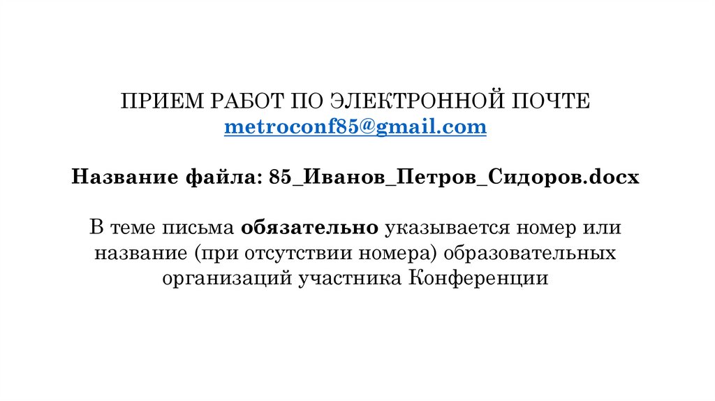 ПРИЕМ РАБОТ ПО ЭЛЕКТРОННОЙ ПОЧТЕmetroconf85@gmail.com