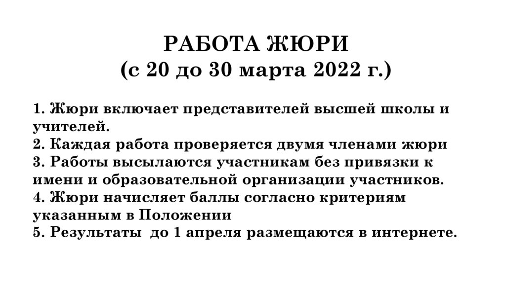 РАБОТА ЖЮРИ(с 20 до 30 марта 2022 г.)