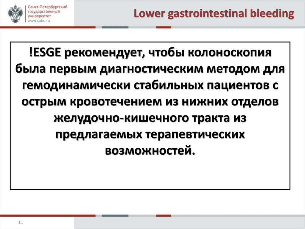 Lower gastrointestinal bleeding!ESGE рекомендует, чтобы колоноскопия