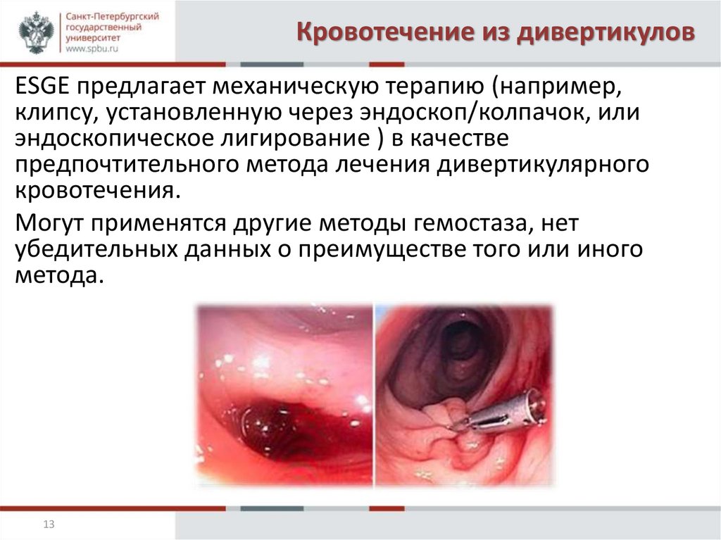 Кровотечение из дивертикуловESGE предлагает механическую терапию (например,