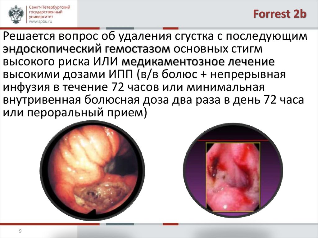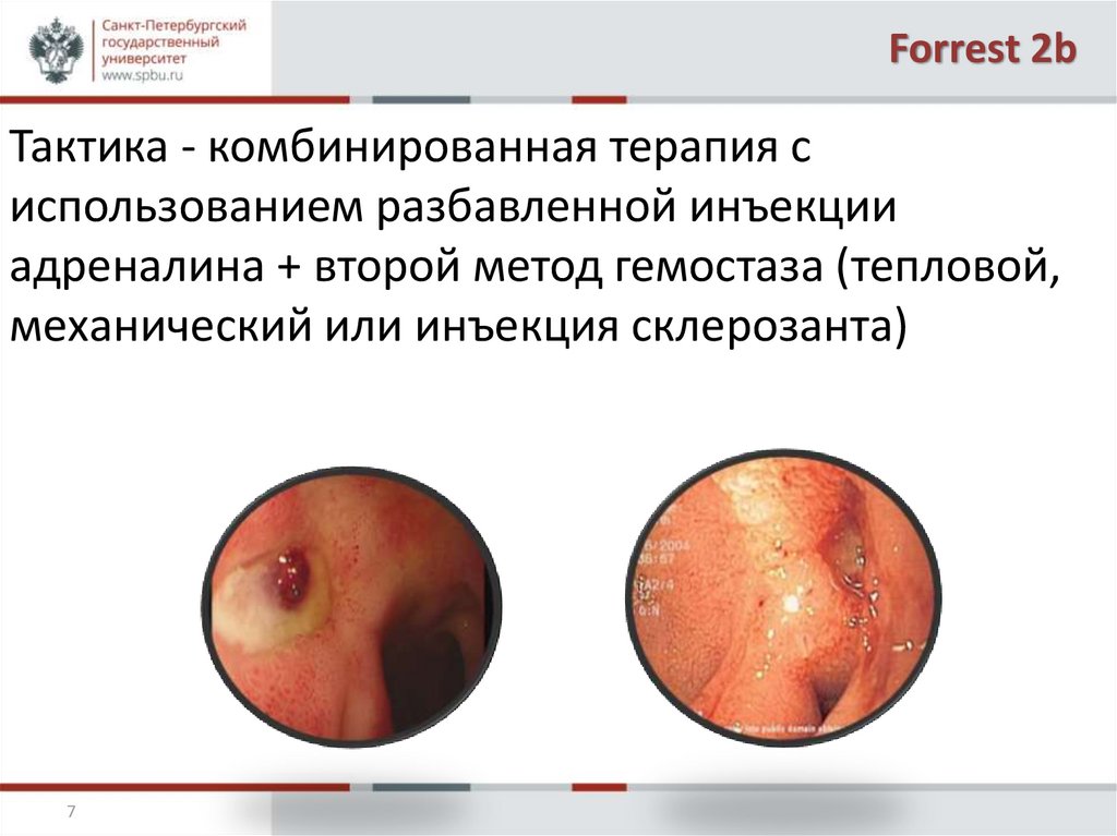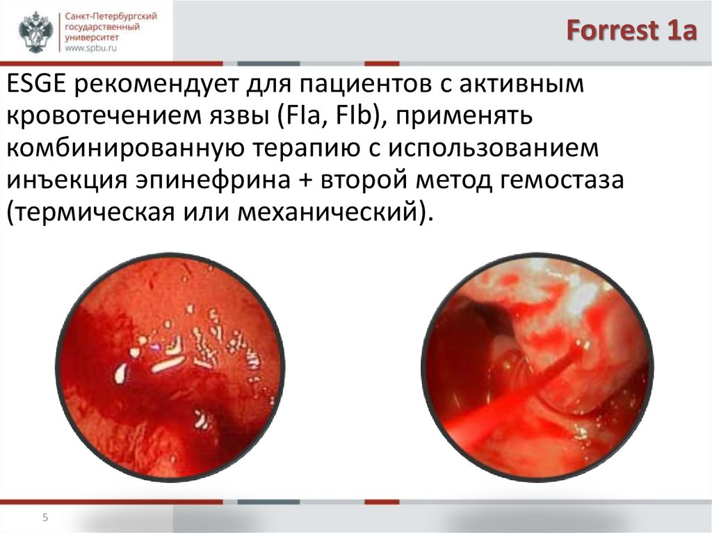 эндоскопический гемостаз, как описано для стигматов FIa, FIb, FIIa