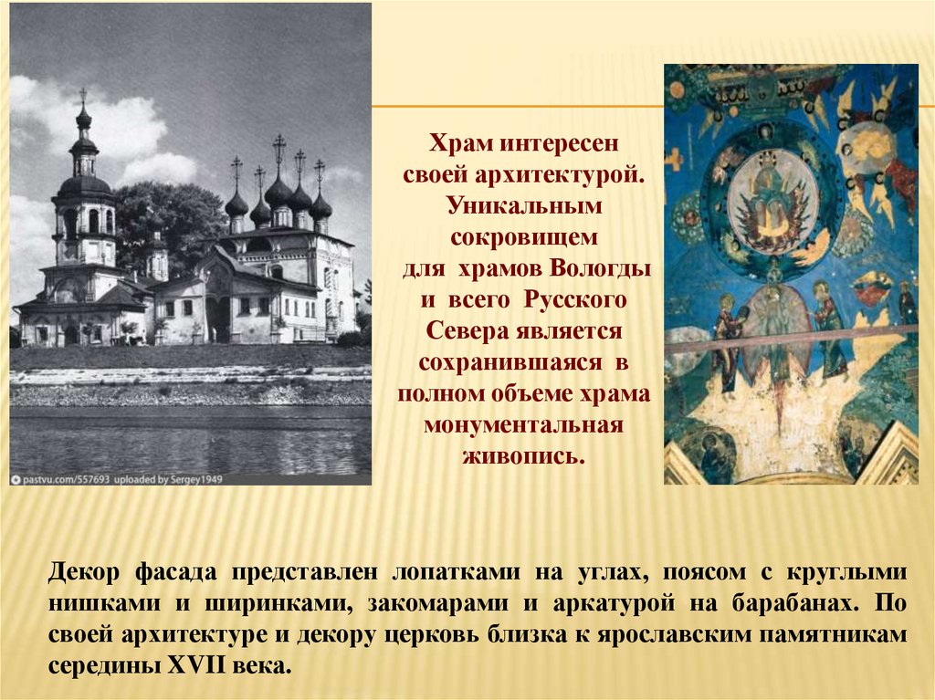 своей архитектуре и декору церковь близка к ярославским памятникам