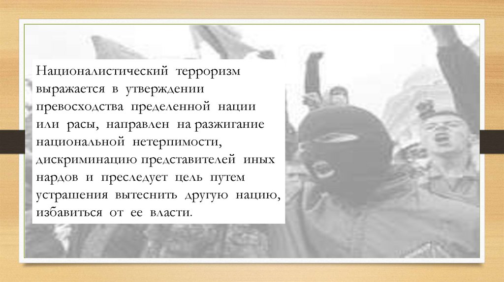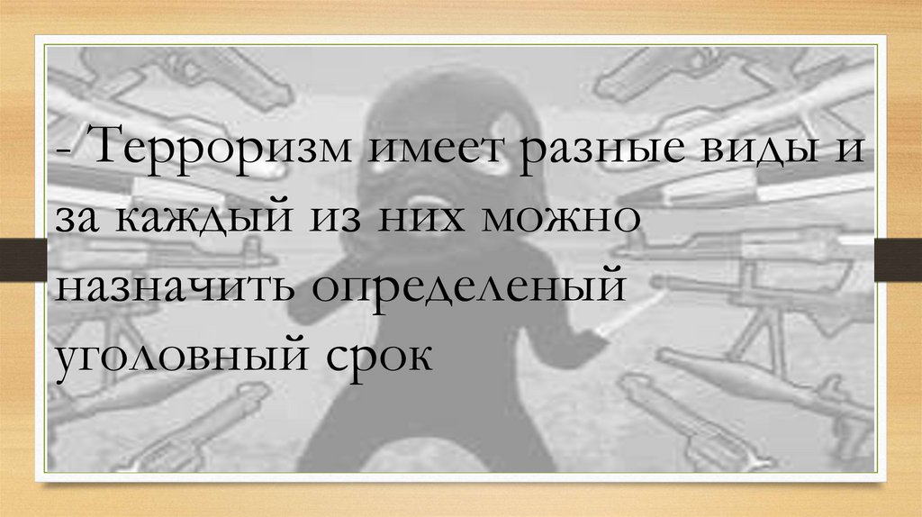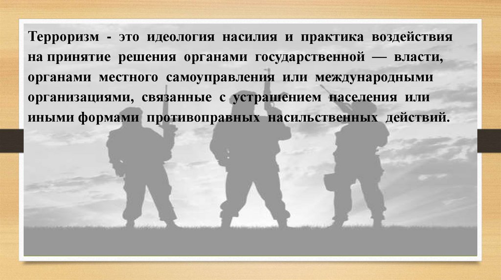 Терроризм - это идеология насилия и практика воздействияна принятие решения органами государственной — власти,