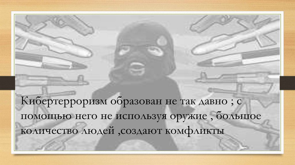 Кибертерроризм образован не так давно ; спомощью него не используя оружие , большое