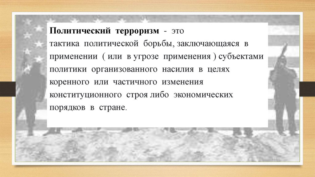 Политический терроризм - этотактика политической борьбы, заключающаяся в