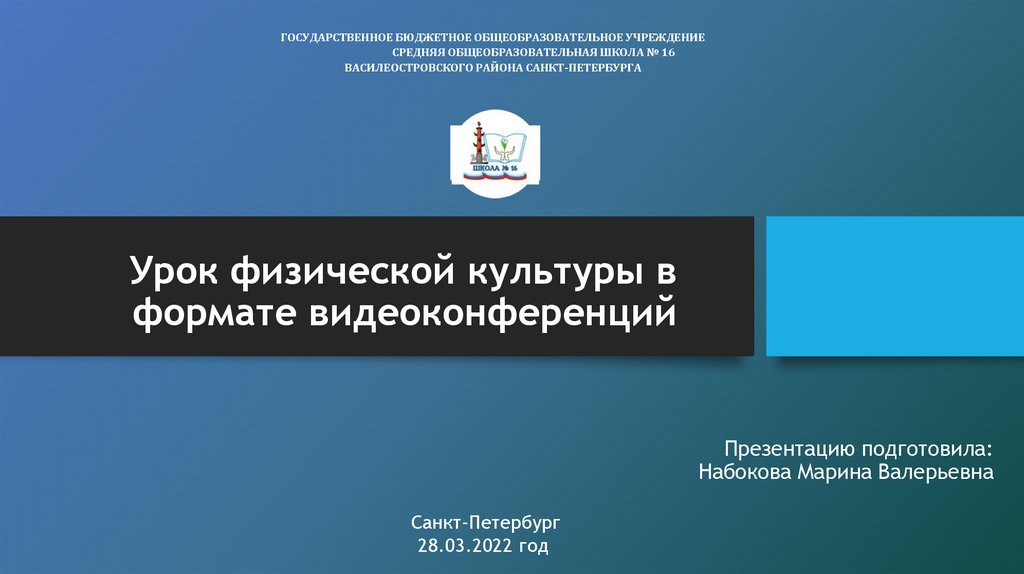 ГОСУДАРСТВЕННОЕ БЮДЖЕТНОЕ ОБЩЕОБРАЗОВАТЕЛЬНОЕ УЧРЕЖДЕНИЕСРЕДНЯЯ ОБЩЕОБРАЗОВАТЕЛЬНАЯ ШКОЛА № 16