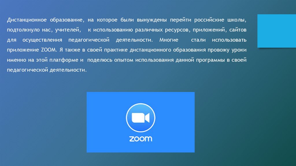 приложение ZOOM. Я также в своей практике дистанционного образования провожу уроки