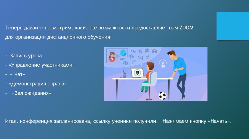 Теперь давайте посмотрим, какие же возможности предоставляет нам ZOOMдля организации дистанционного обучения: