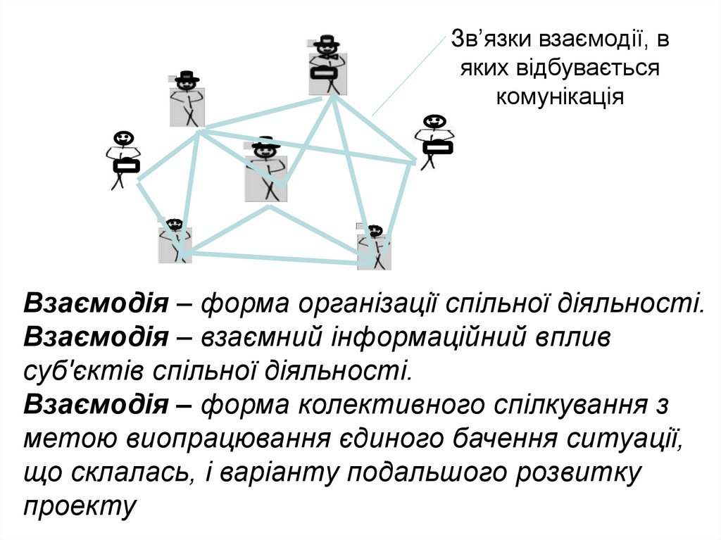 • Взаємодія в проектах – спільнадіяльність зацікавлених сторін проекту,