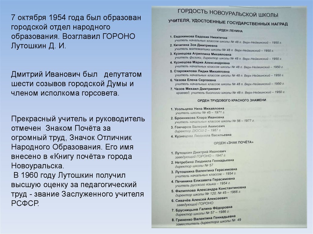 9. Безусловно, биография Дмитрия Ивановича Лутошкина, заслуженного учителя РСФСР - пример беззаветного служения любимой профессии.