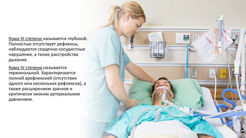 Кома III степени называется глубокой.Полностью отсутствует рефлексы,