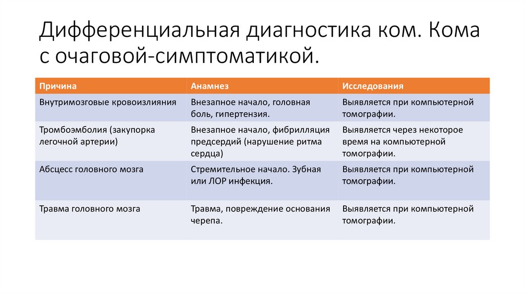 Дифференциальная диагностика ком. Комас очаговой-симптоматикой.