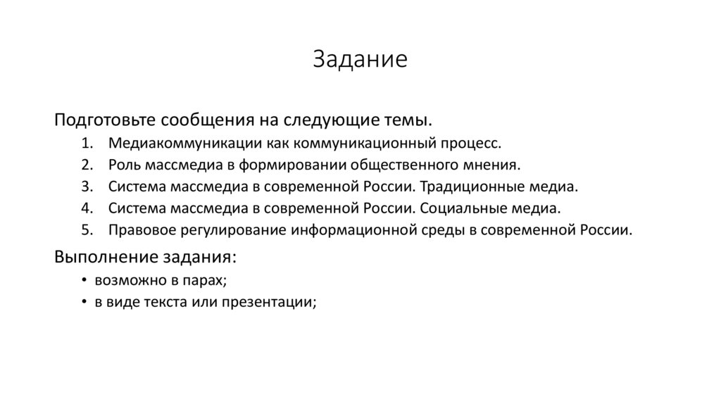 Система массмедиа в современной России. Социальные медиа.