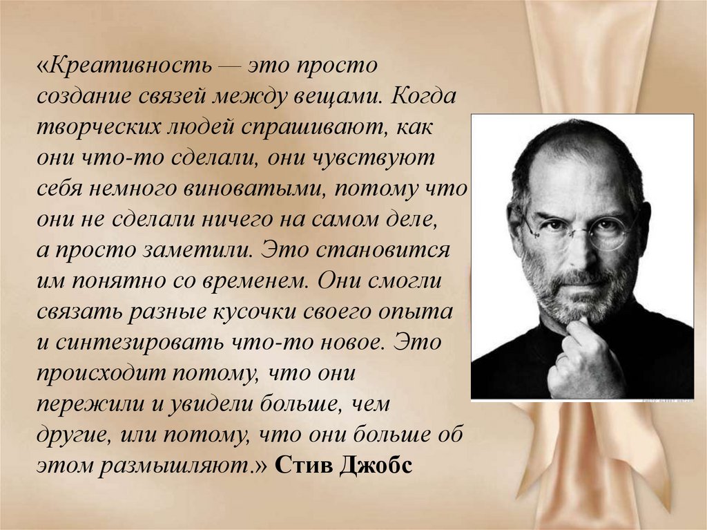 «Креативность — это простосоздание связей между вещами. Когда