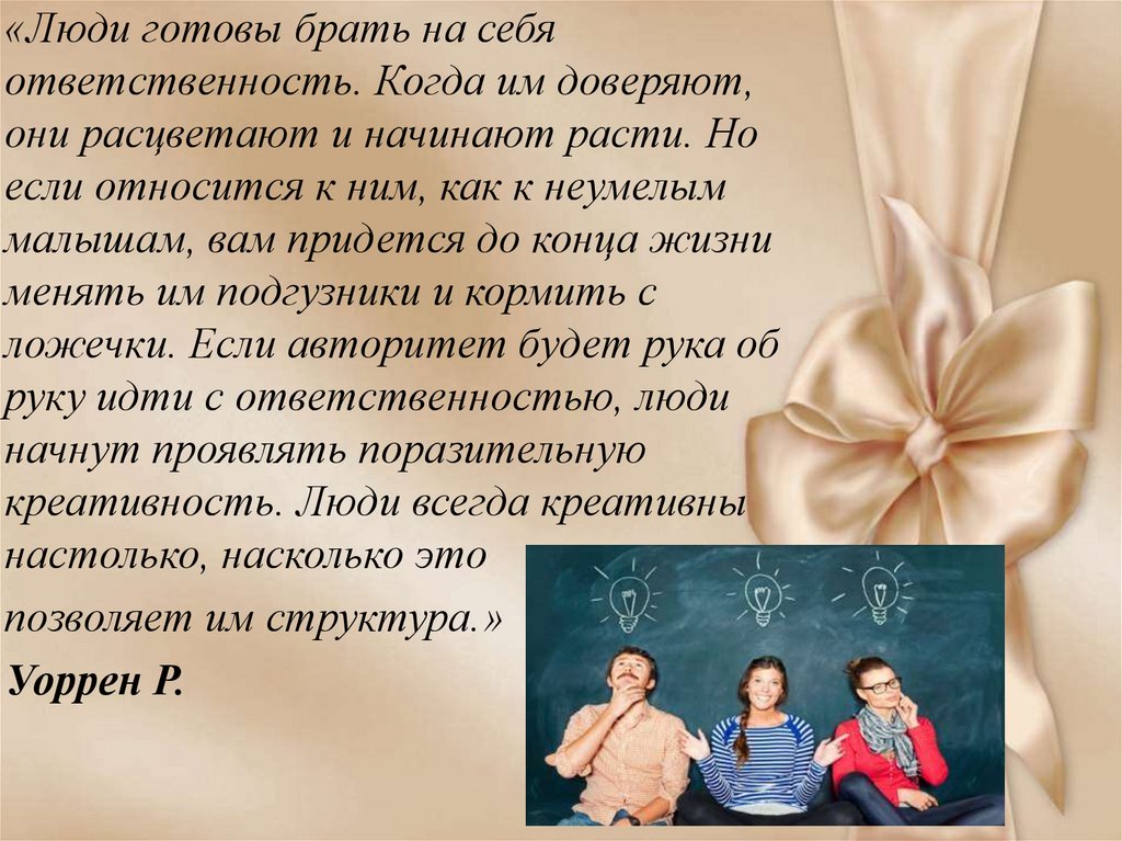 «Люди готовы брать на себяответственность. Когда им доверяют,