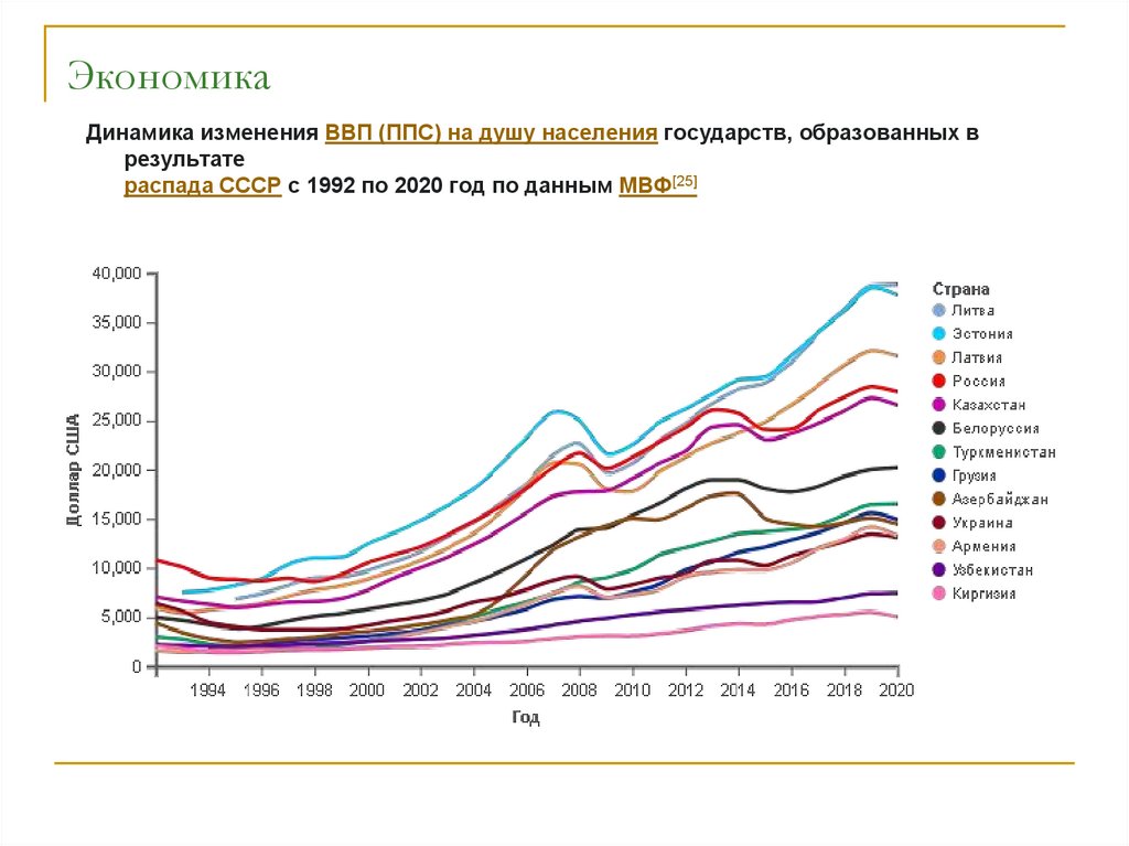 распада СССР с 1992 по 2020 год по данным МВФ[25]