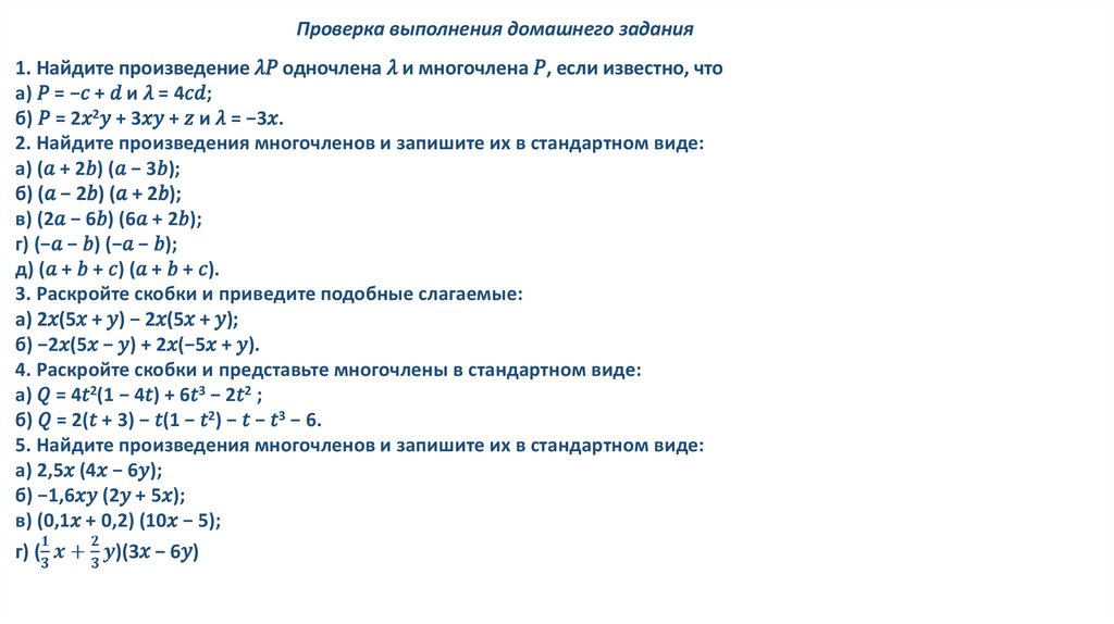 Умножение многочлена на многочлен