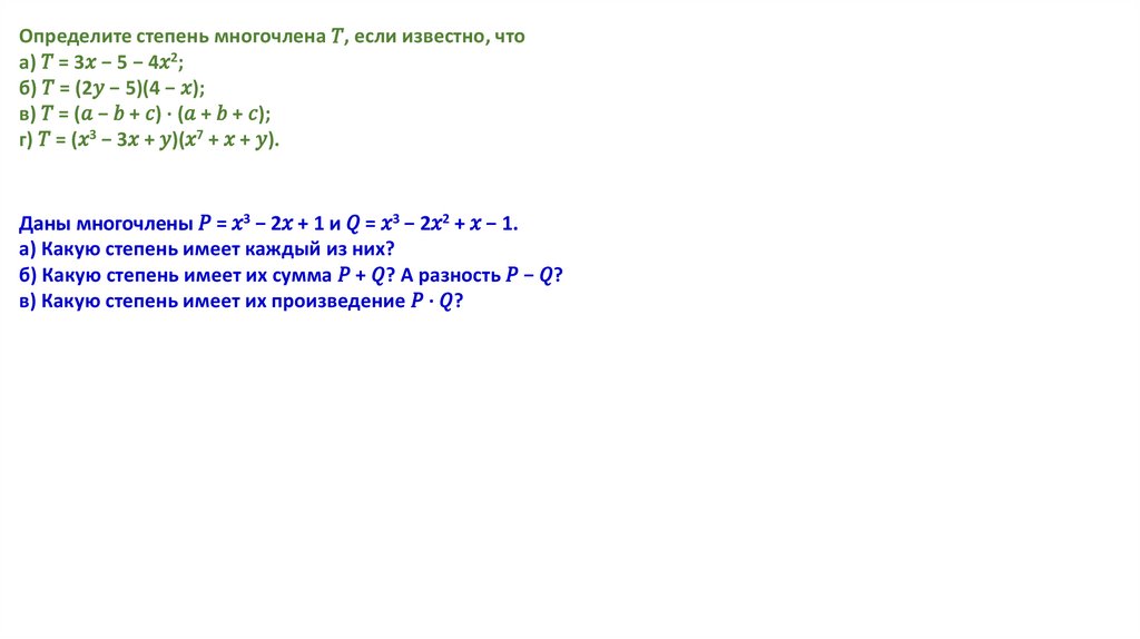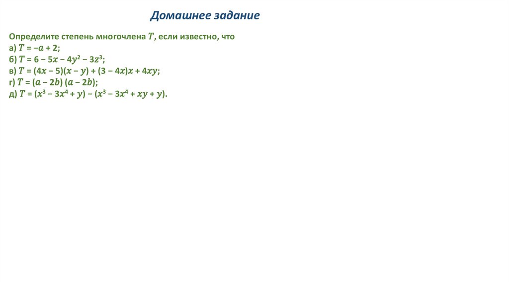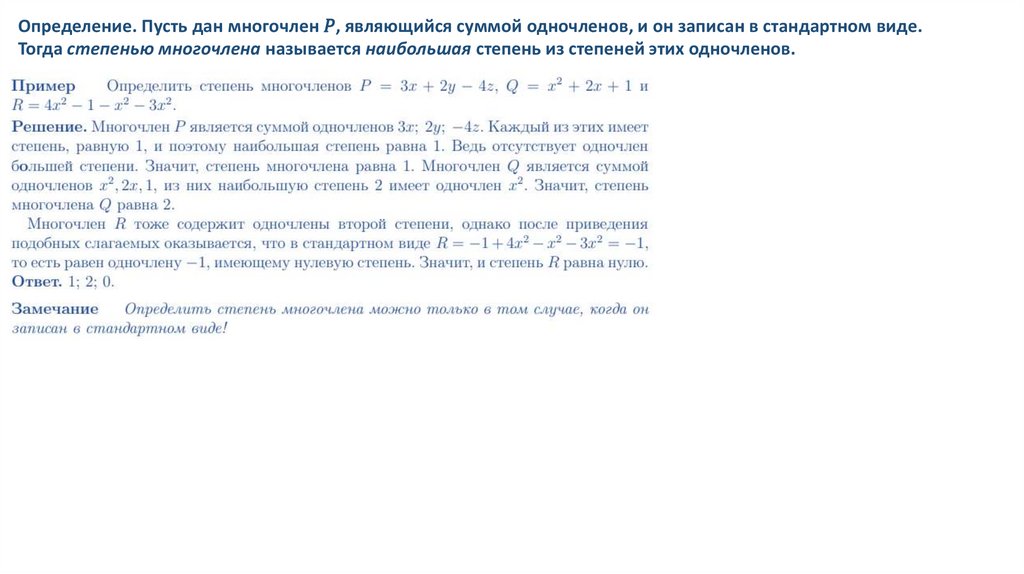 Многочлен. Стандартный вид многочлена. Степень многочлена