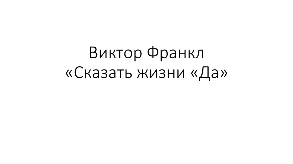 Виктор Франкл «Сказать жизни «Да»Ви́ ктор Эми́ ль Франкл 1905— 1997 —