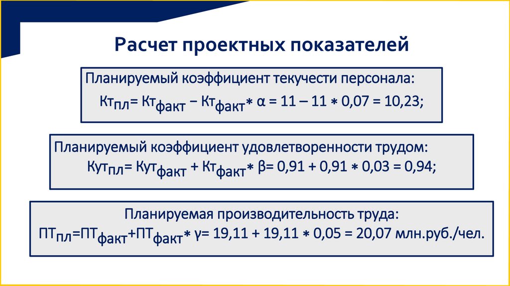 Расчет проектных показателейПланируемый коэффициент текучести персонала: