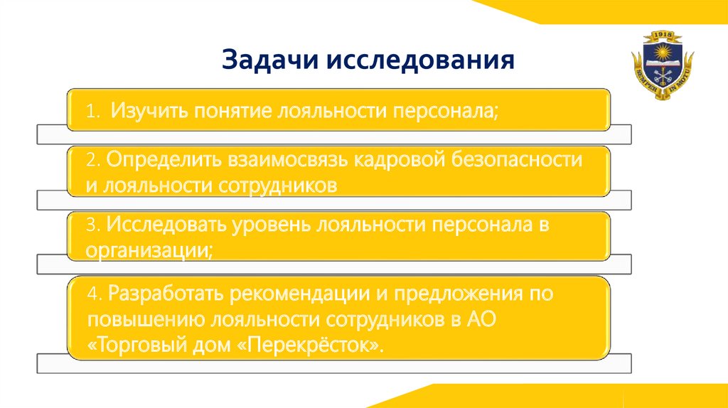 Задачи исследования1. Изучить понятие лояльности персонала;