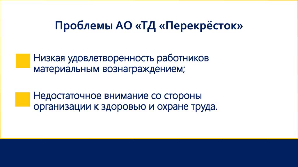 Проблемы АО «ТД «Перекрёсток»Низкая удовлетворенность работников