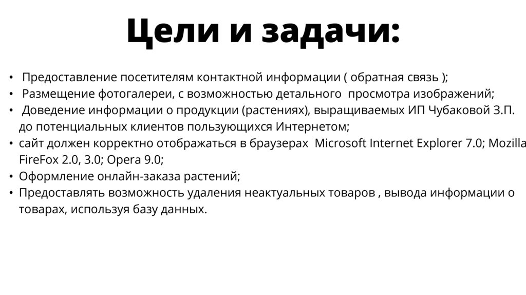 • Доведение информации о продукции (растениях), выращиваемых ИП Чубаковой З.П.