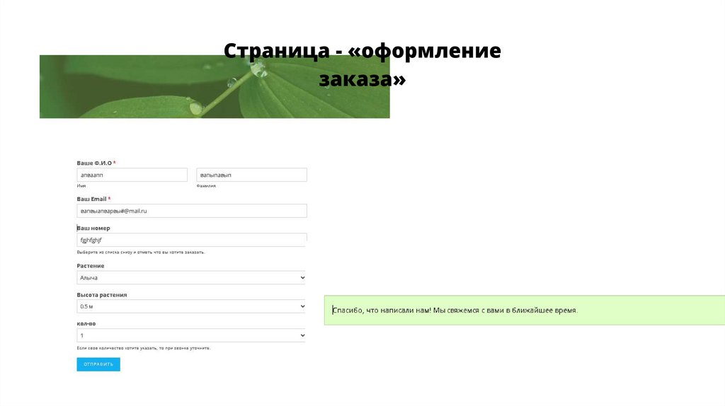 • Оформление онлайн-заказа растений;