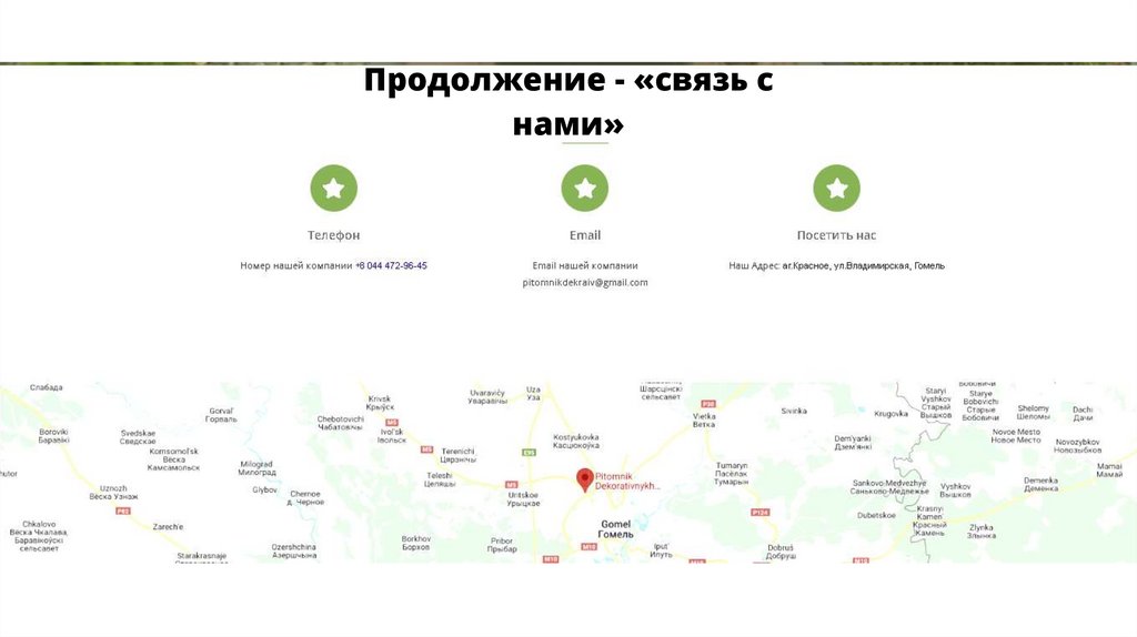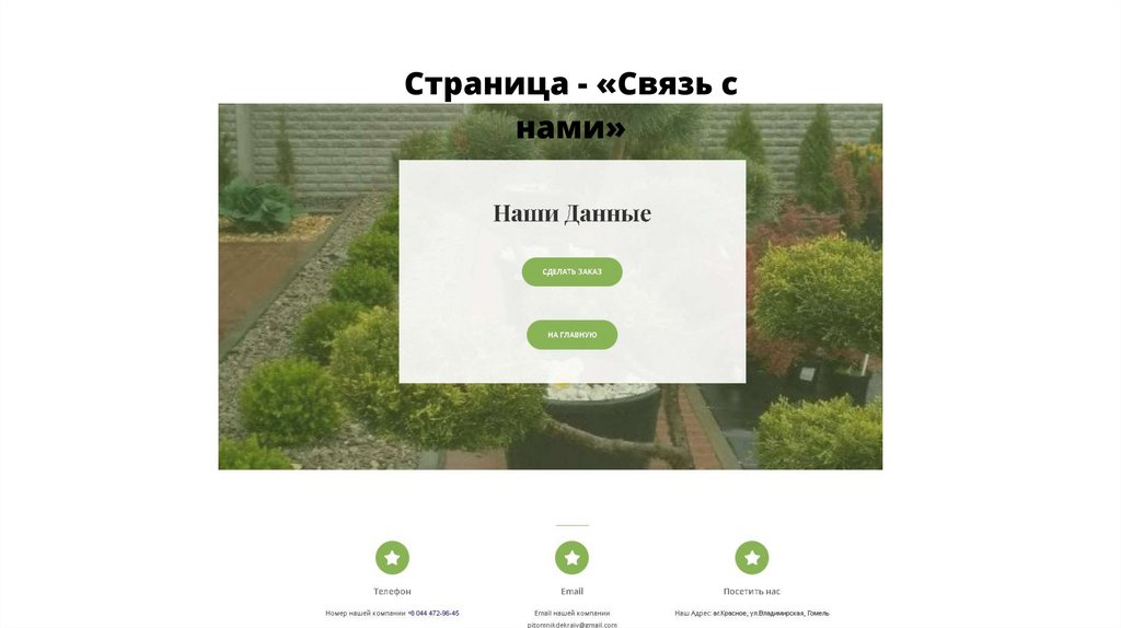Цели и задачи:• Предоставление посетителям контактной информации ( обратная связь );
