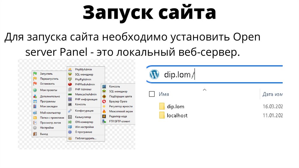 Запуск сайтаДля запуска сайта необходимо установить Open