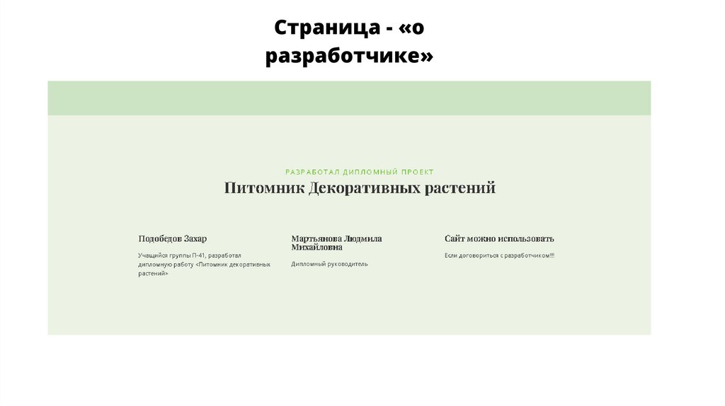 Страница - «оразработчике»
