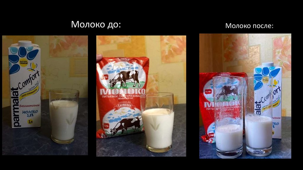 Молоко до:Молоко после: