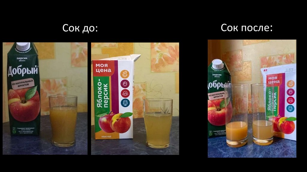 Сок до:Сок после: