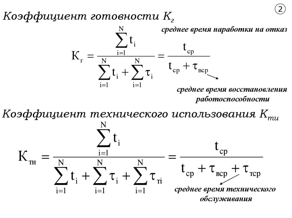 2Коэффициент готовности Кг