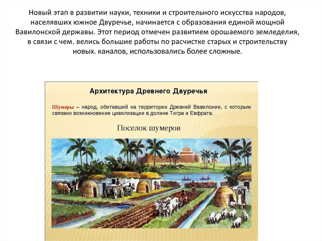 Новый этап в развитии науки, техники и строительного искусства народов,населявших южное Двуречье, начинается с образования единой мощной
