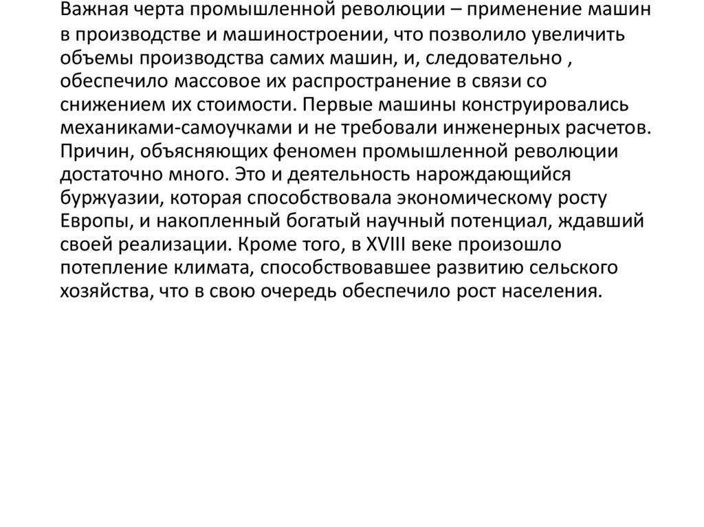 Важная черта промышленной революции – применение машинв производстве и машиностроении, что позволило увеличить