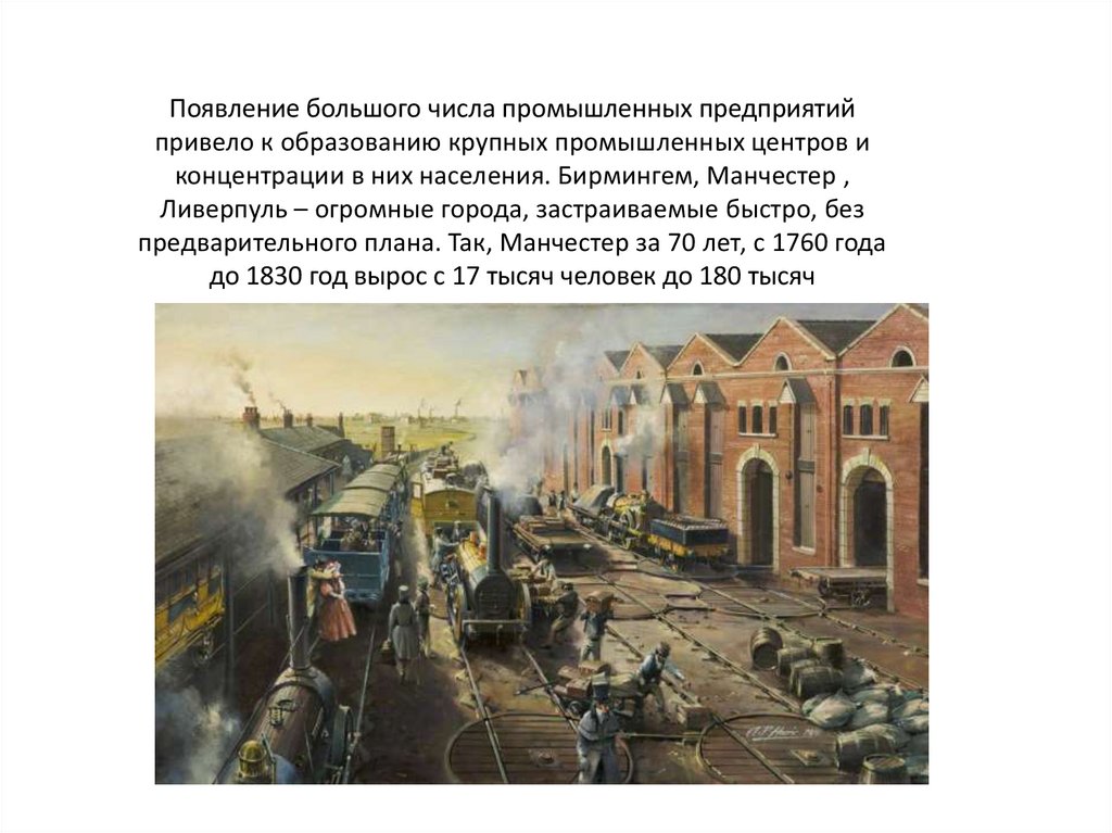 Появление большого числа промышленных предприятийпривело к образованию крупных промышленных центров и