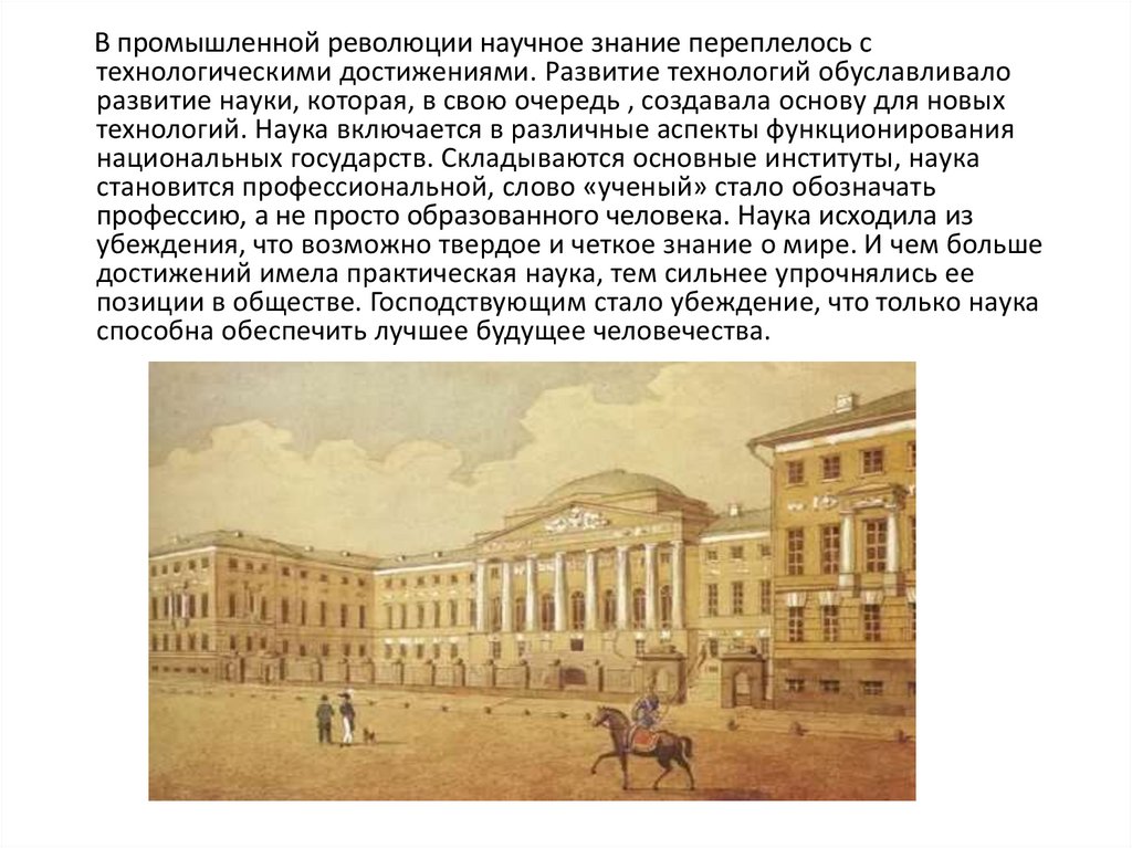 В промышленной революции научное знание переплелось стехнологическими достижениями. Развитие технологий обуславливало