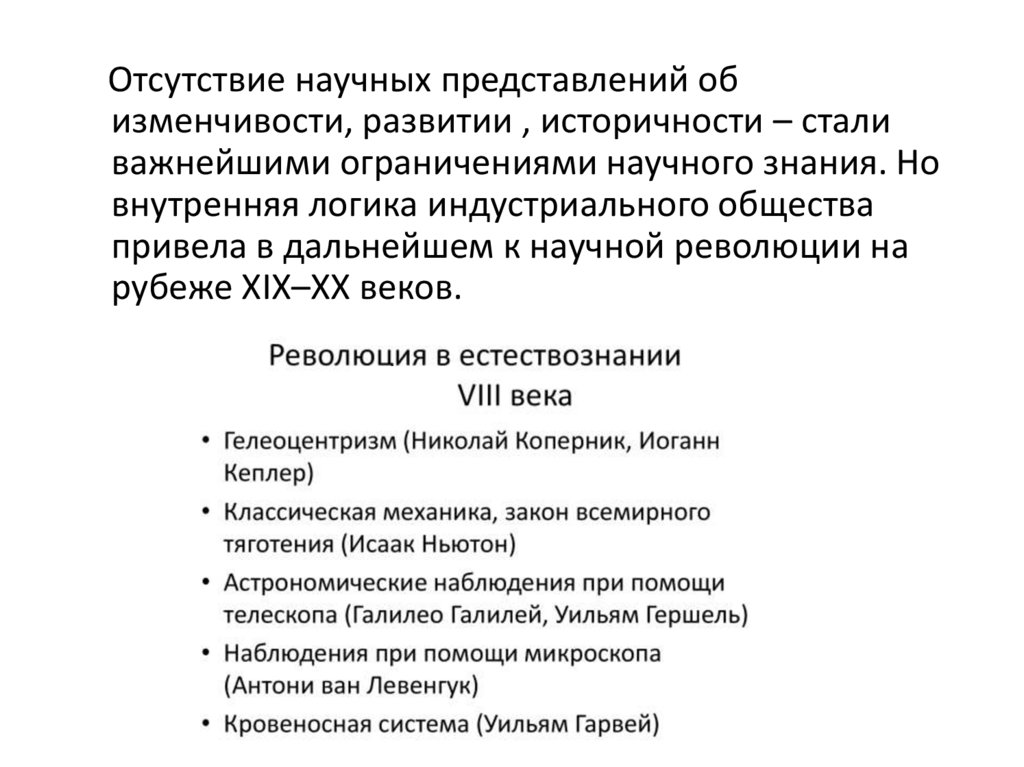 Отсутствие научных представлений обизменчивости, развитии , историчности – стали