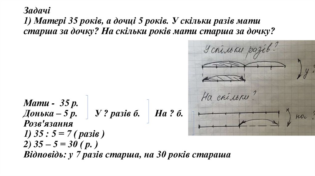 Задачі1) Матері 35 років, а дочці 5 років. У скільки разів мати