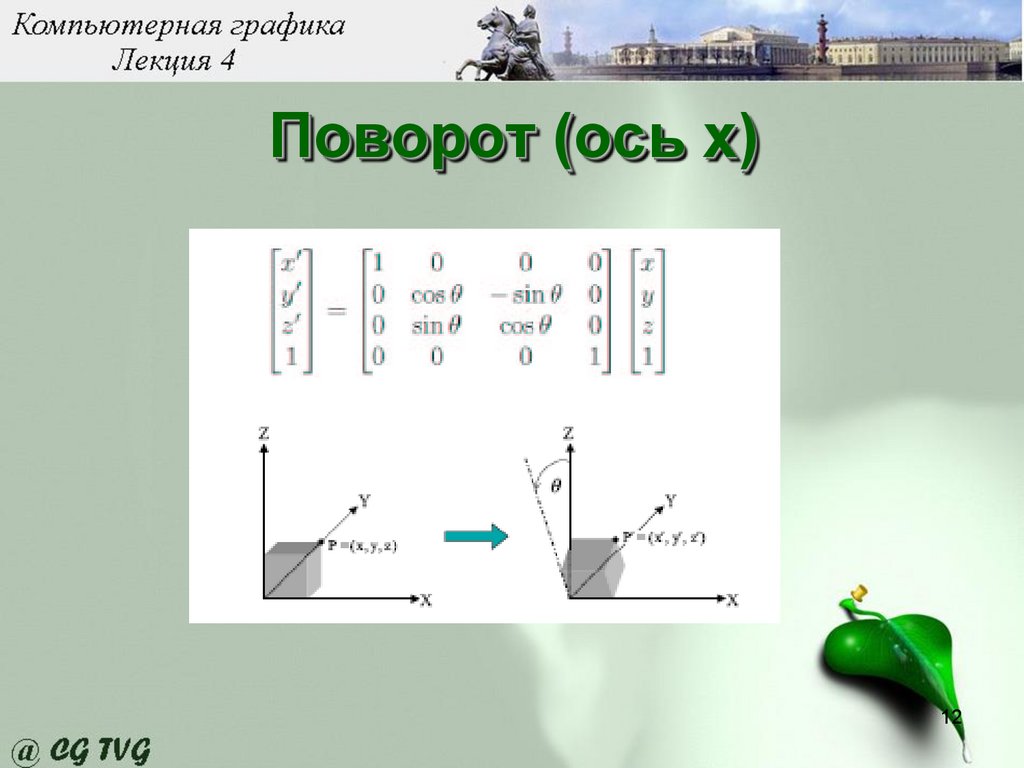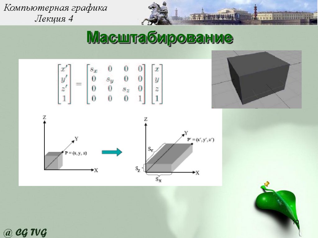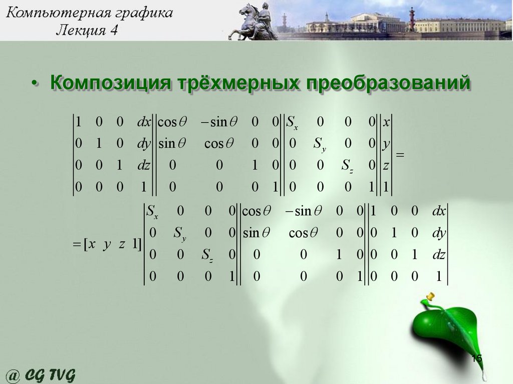 [X Y Z W]=[x y z 1]*Т и [x' y' z' 1]=[X/W Y/W Z/W 1],