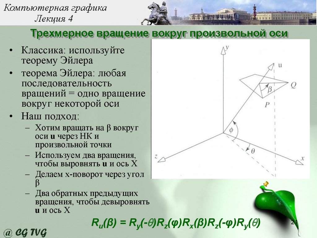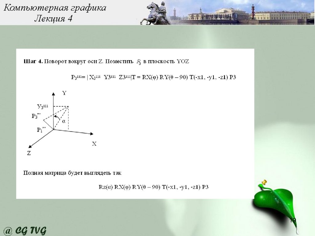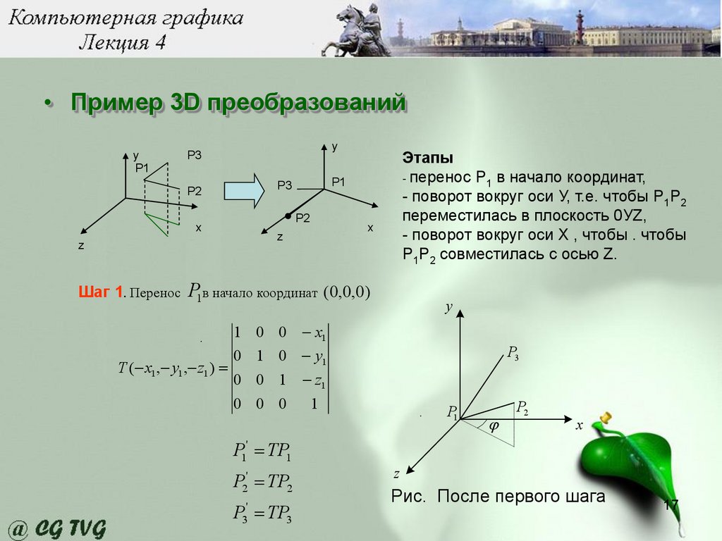 Тогда трехмерная точка в трехмерном пространстве P(x, y, z) представится