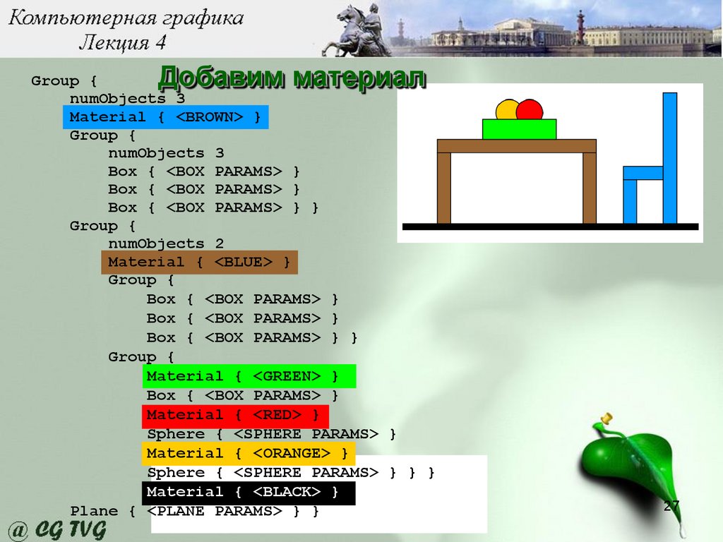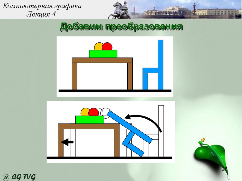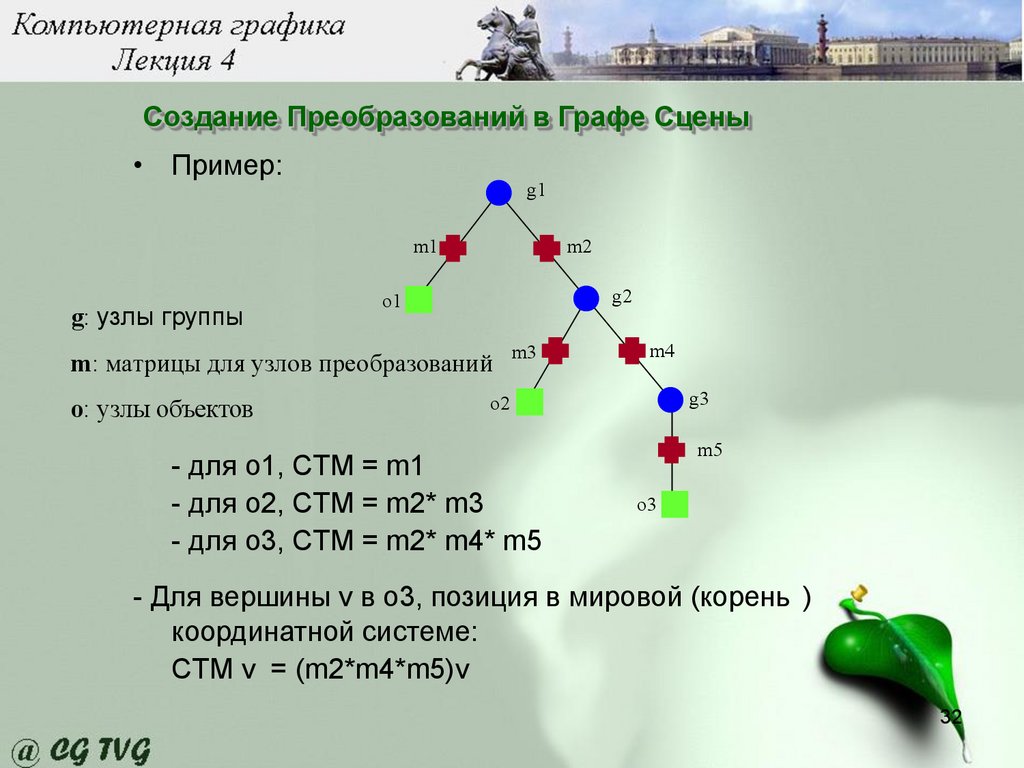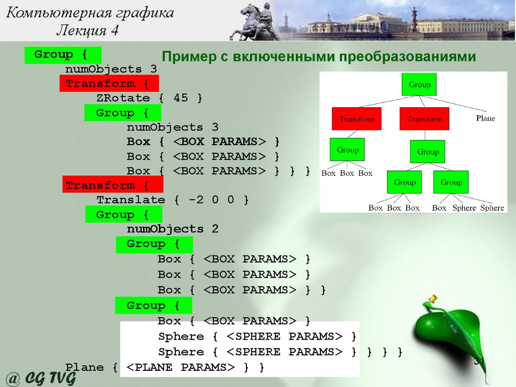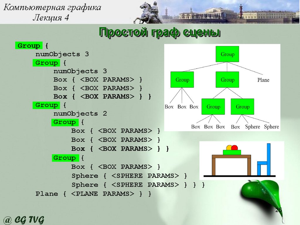 • 3D сцены часто хранятся сохраненный внаправленном ациклическом графе (DAG)