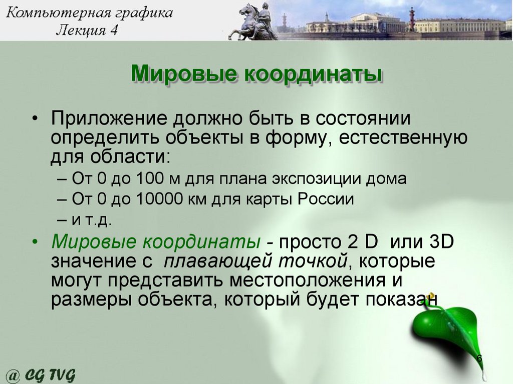 Преобразования в мировом пространстве(“окно в поле вывода”)