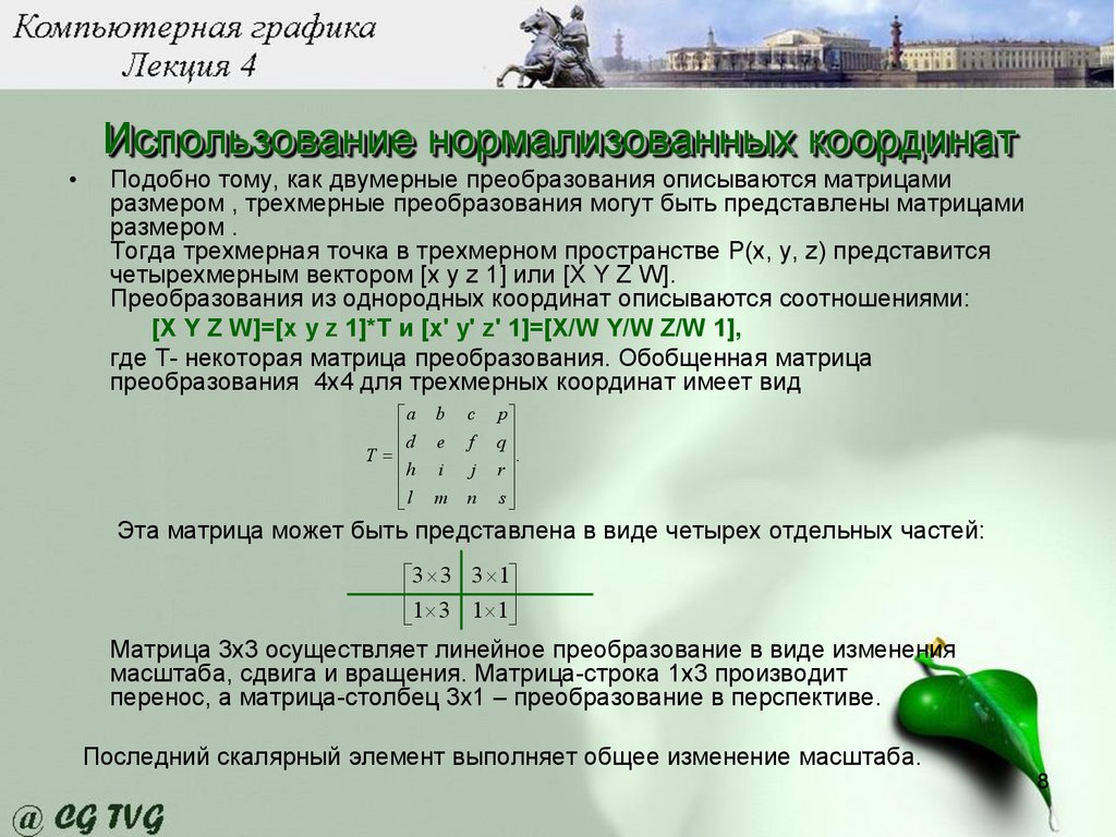 Использование нормализованных координатПодобно тому, как двумерные преобразования описываются матрицами