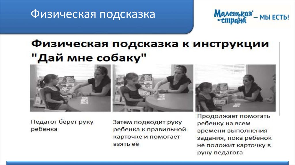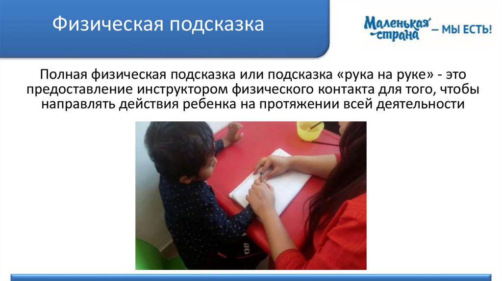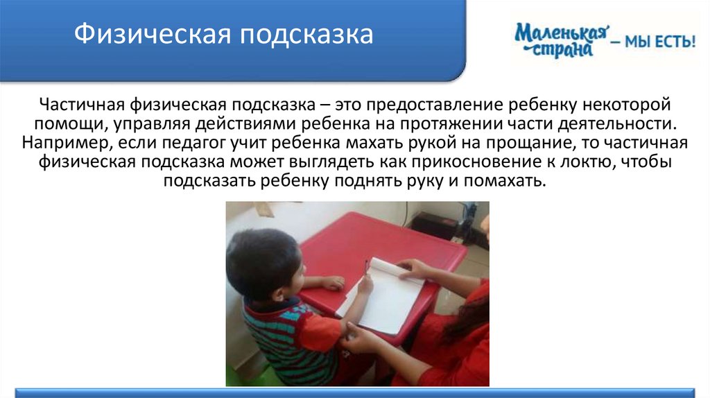 Физическая подсказкаЧастичная физическая подсказка – это предоставление ребенку некоторой