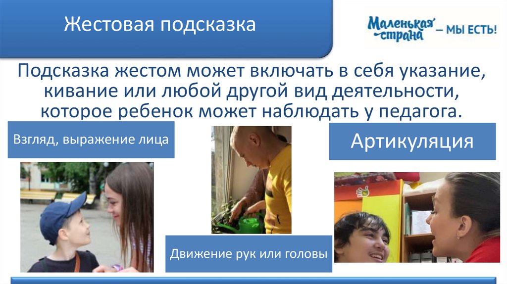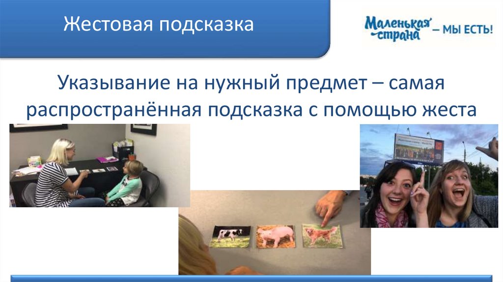 использовать одновременно визуальную и жестовую подсказку, показывая