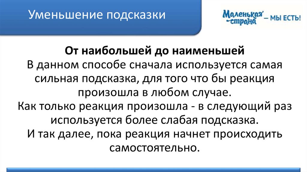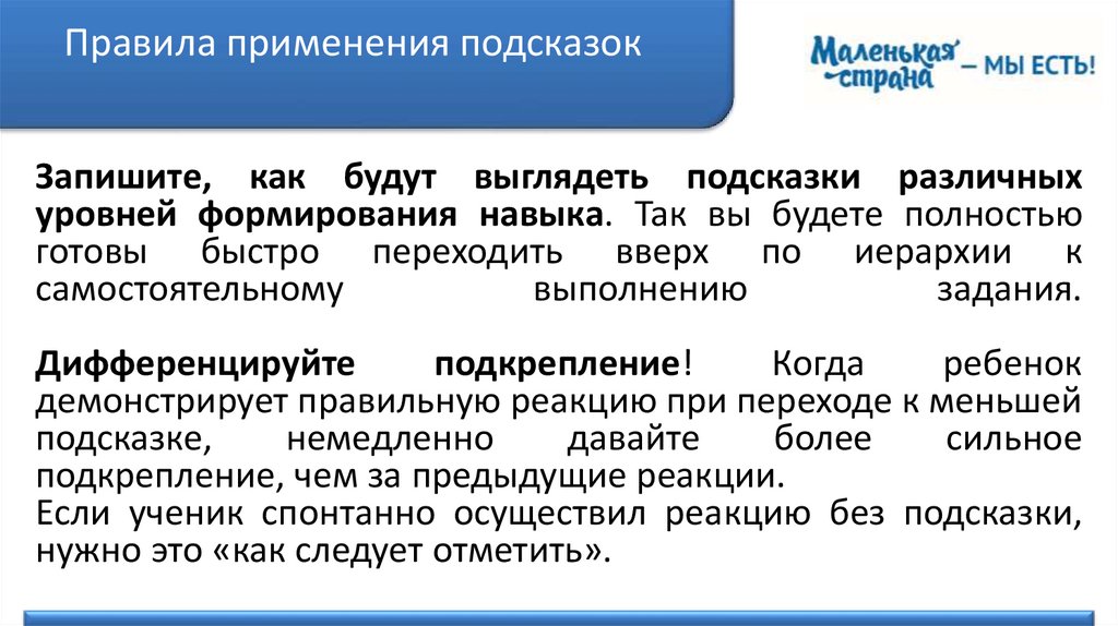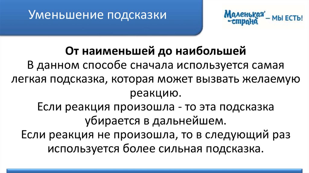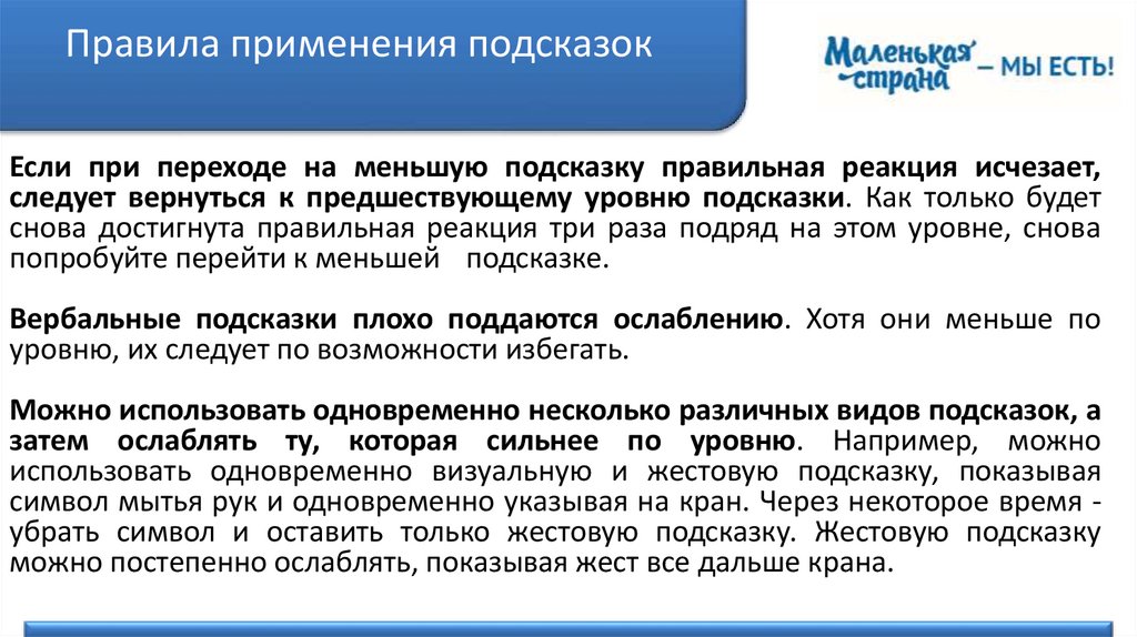 Правила применения подсказокЕсли при переходе на меньшую подсказку правильная реакция исчезает,