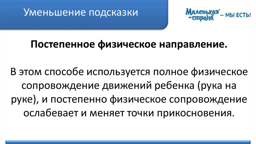 Уменьшение подсказкиПостепенное физическое направление.