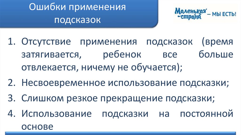 2. Несвоевременное использование подсказки;